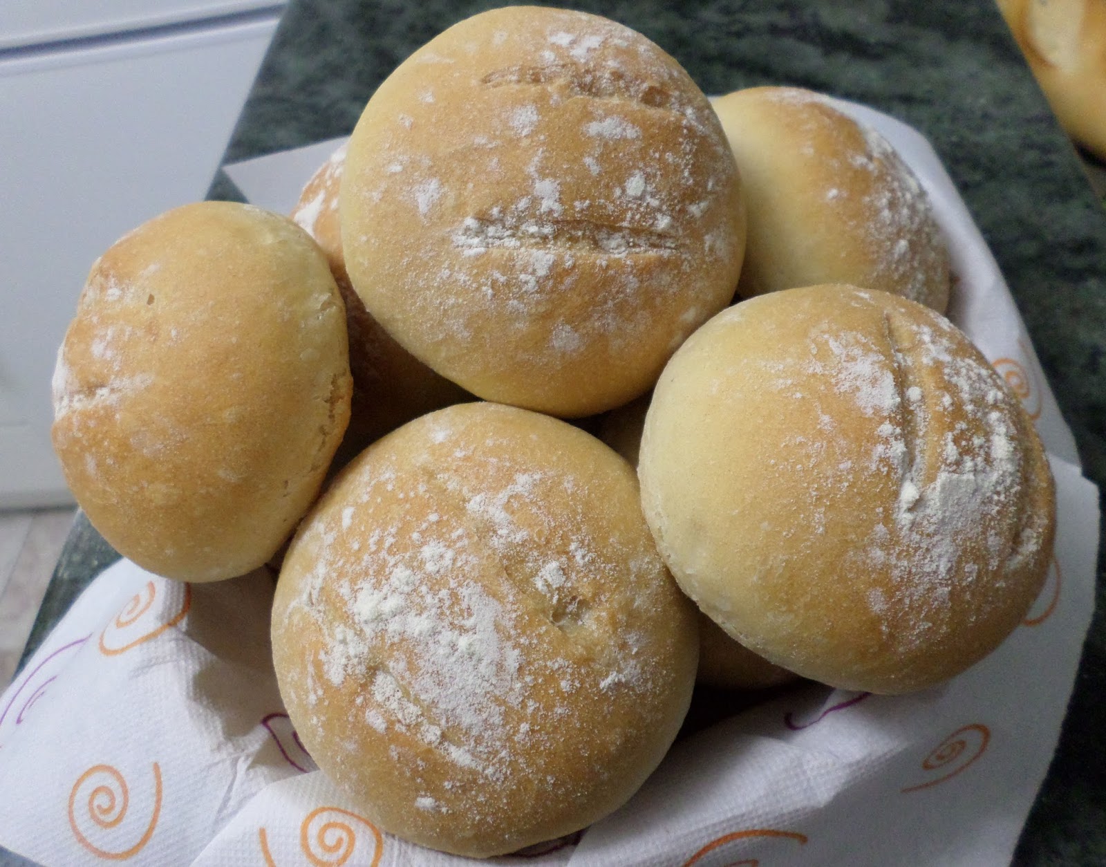 Éstos los he hecho con la misma masa, haciendo una masa madre con 100 g. de harina, 100 de agua templada y 7 g. de levadura (toda la noche en la nevera tapada).